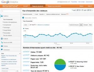 oeno-tourisme.net vole de record en record. L’audience de notre site a dépassé les 40’000 visiteurs uniques mensuels, en hausse de 25 % sur un an. Ce sont pas moins de 120’000 pages vues qui ont été consultées en moyenne chaque mois durant l'année 2012, selon Google Analytics, le numéro un mondial des statistiques internet.